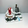 4. Ambientazione/Base: L’intero diorama è costruito su una base che simula una piazza innevata. Ci sono figure di pupazzi di neve, piccole persone (villeggianti), lampioni accesi, un alberello di Natale al centro.